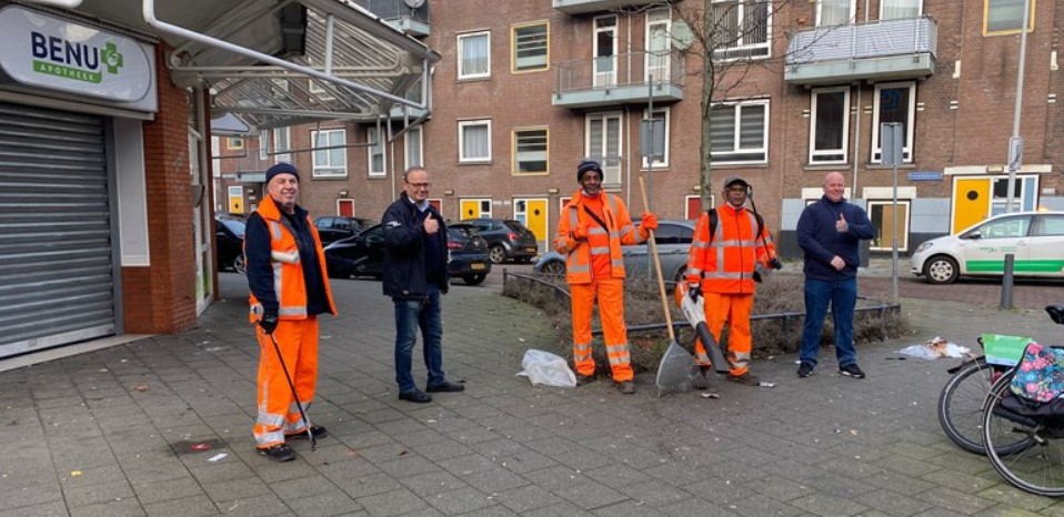 Zaterdagochtend gaat het leven gewoon door en is de Veegploeg aan zet… De dag begint voor het team van de straatvegers op nieuwjaarsdag om 9:00 uur. Dat betekent dus dat ze op deze dag, die veel Nederlanders een paar uurtjes later beginnen omdat het de avond daarvoor zo laat geworden was, vroeg uit de veren moeten. Tussen de rij Rotterdammers op zoek naar een ontbijtje voor een bakkerij op de Crooswijkseweg vegen de mannen van het team dat in Crooswijk aan de slag is bergjes vuil naar de zijkant van de stoep. Zodat een kleine veegwagen ze kan opzuigen.