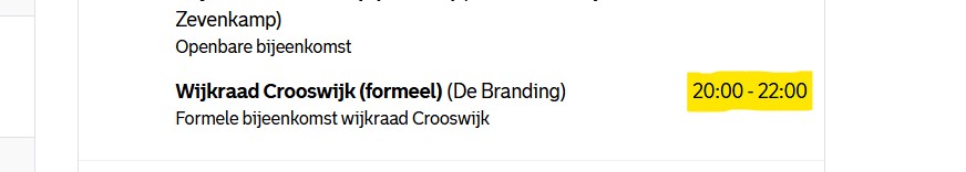 Het overleg met de wijkraad Crooswijk zal gewoon om 20:00 uur aanvangen…